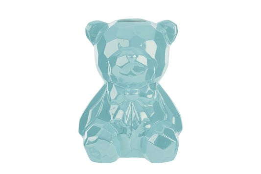 Salvadanaio a orsetto in porcellana celeste 14x13x18H - Le stelle