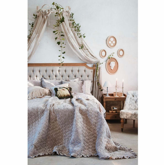 Set Trapunta matrimoniale con 2 copriguanciali in velluto tortora - Blanc Maricló