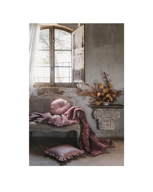 Set Trapunta matrimoniale con 2 copriguanciali in velluto rosa antico - Blanc Maricló