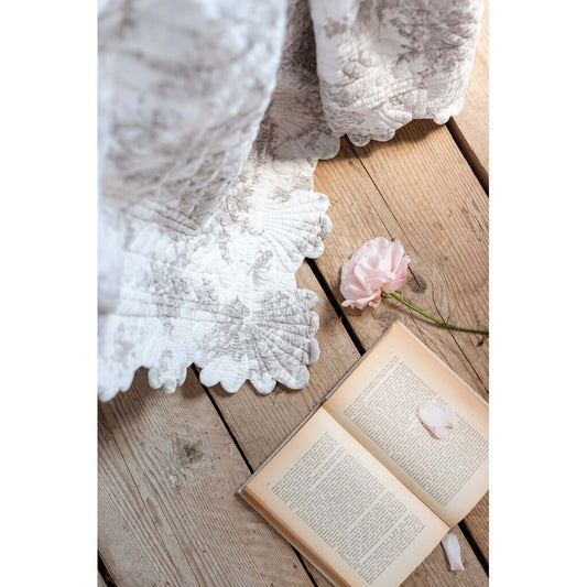 Boutis (trapunta) matrimoniale serie 'Toile de Jouy' 250x250 - Blanc Maricló