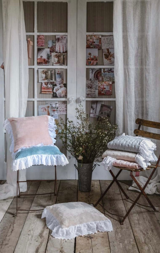 Cuscino in plaid con gala pizzo sangallo - Blanc Maricló