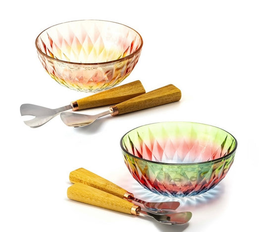 Insalatiera +2 posate linea ’Rainbow’ 23x10cm chiara - Madrhelen