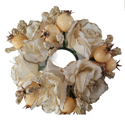 Girocandela a corona con agrifoglio bordó e oro D16 - EDG