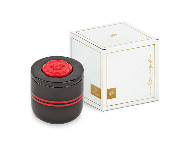 Elegante candela nera e rossa grande, con ceralacca rosso in tema Laurea.