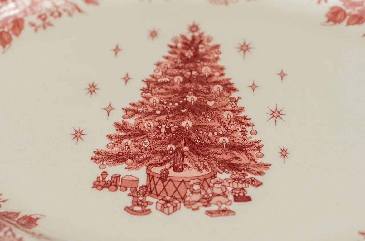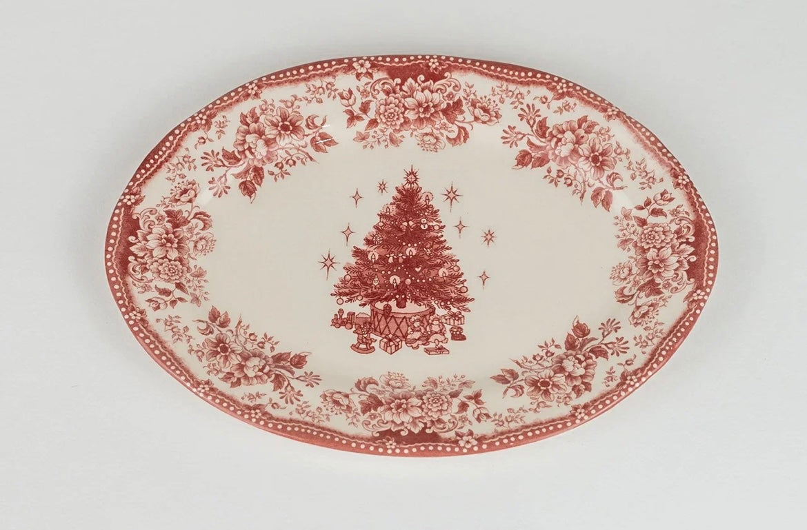 Meravigliosa questo vassoio ovale piccolo in ceramica decorata con un albero di natale che caratterizza tutta la linea "Diana Rose" di Blanc Mariclo'