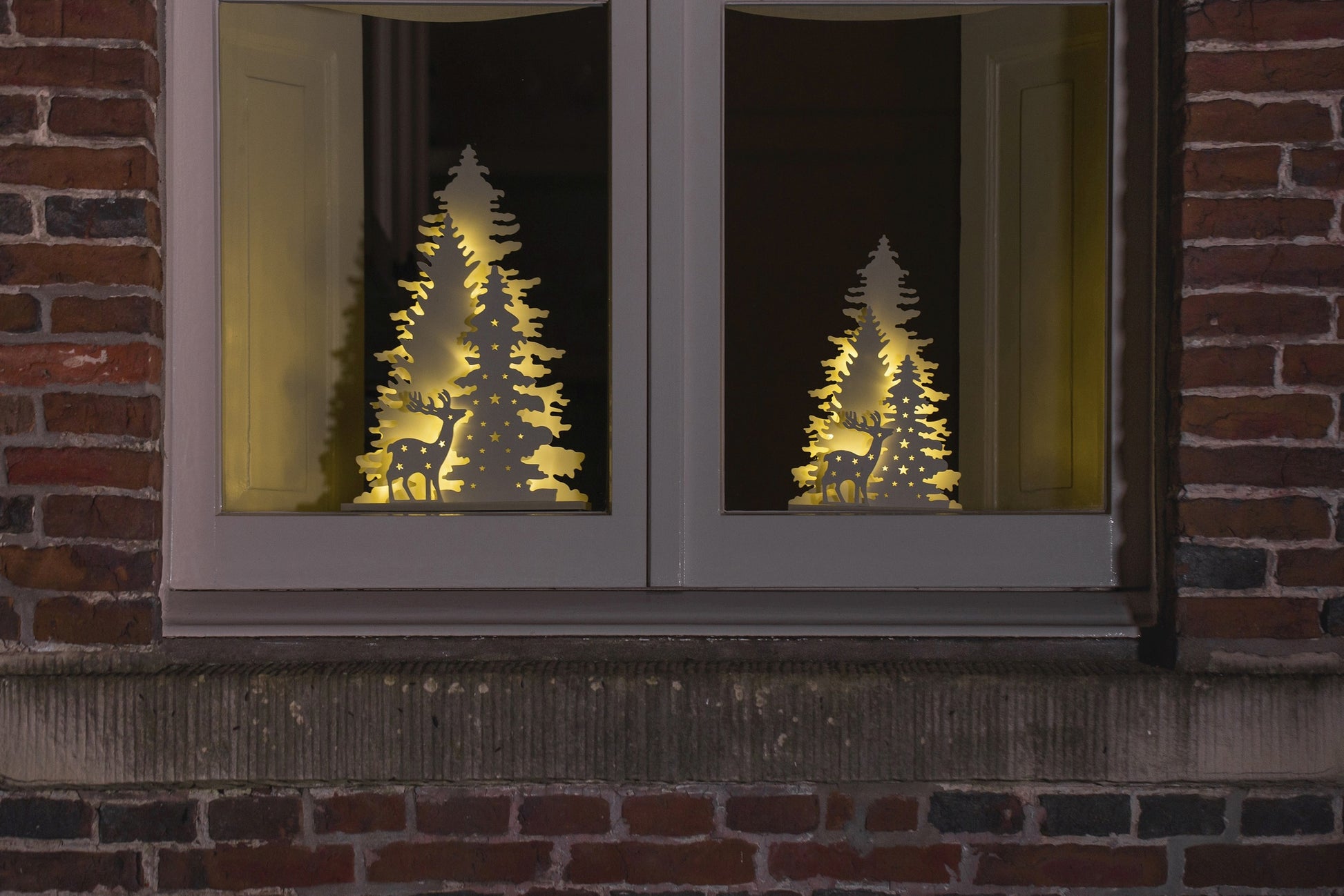 Suggestiva composizione natalizia in legno che ritrae un paesaggio invernale con alberi e un elegante cervo. Arricchita da illuminazione LED integrata, questa decorazione crea un'atmosfera magica e contemplativa durante le festività. Un'aggiunta sofisticata per chi apprezza decorazioni natalizie che uniscono artigianalità e fascino tradizionale.