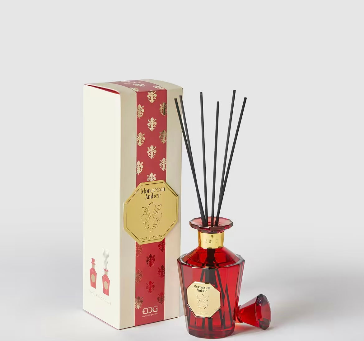 Il diffusore d'ambiente con bastoncini della linea GoldLilly 'Moroccan Amber' è perfetto per profumare i propri ambienti di casa, di EDG.