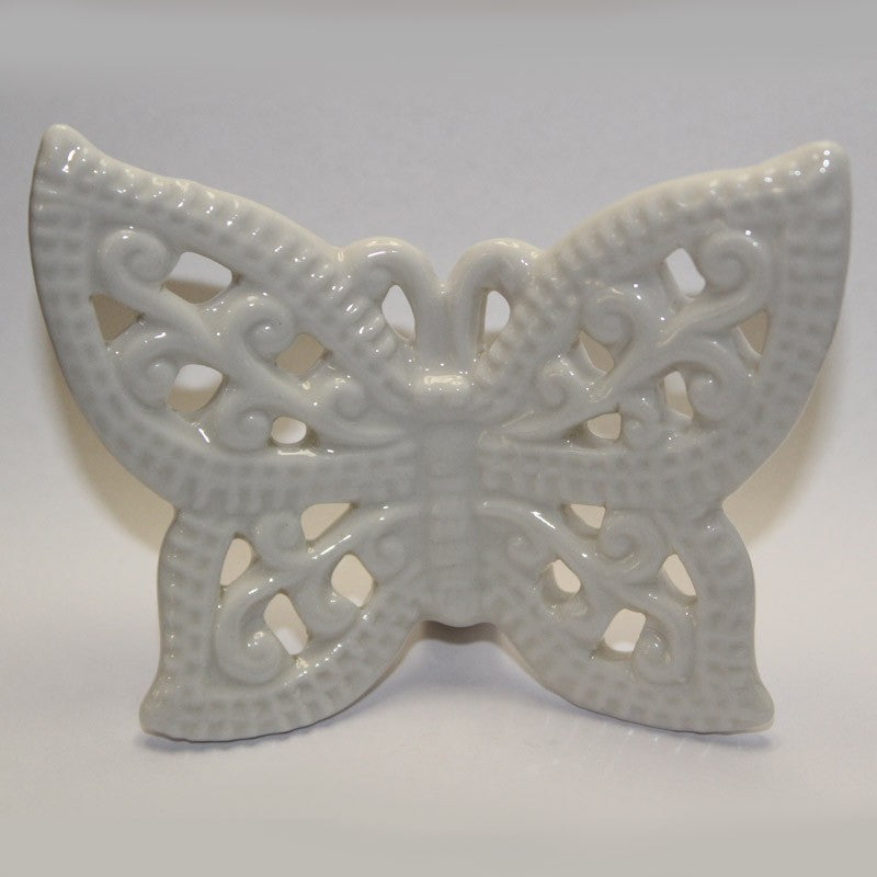 Farfalla traforata in ceramica in colore bianca con calamita, Le stelle.