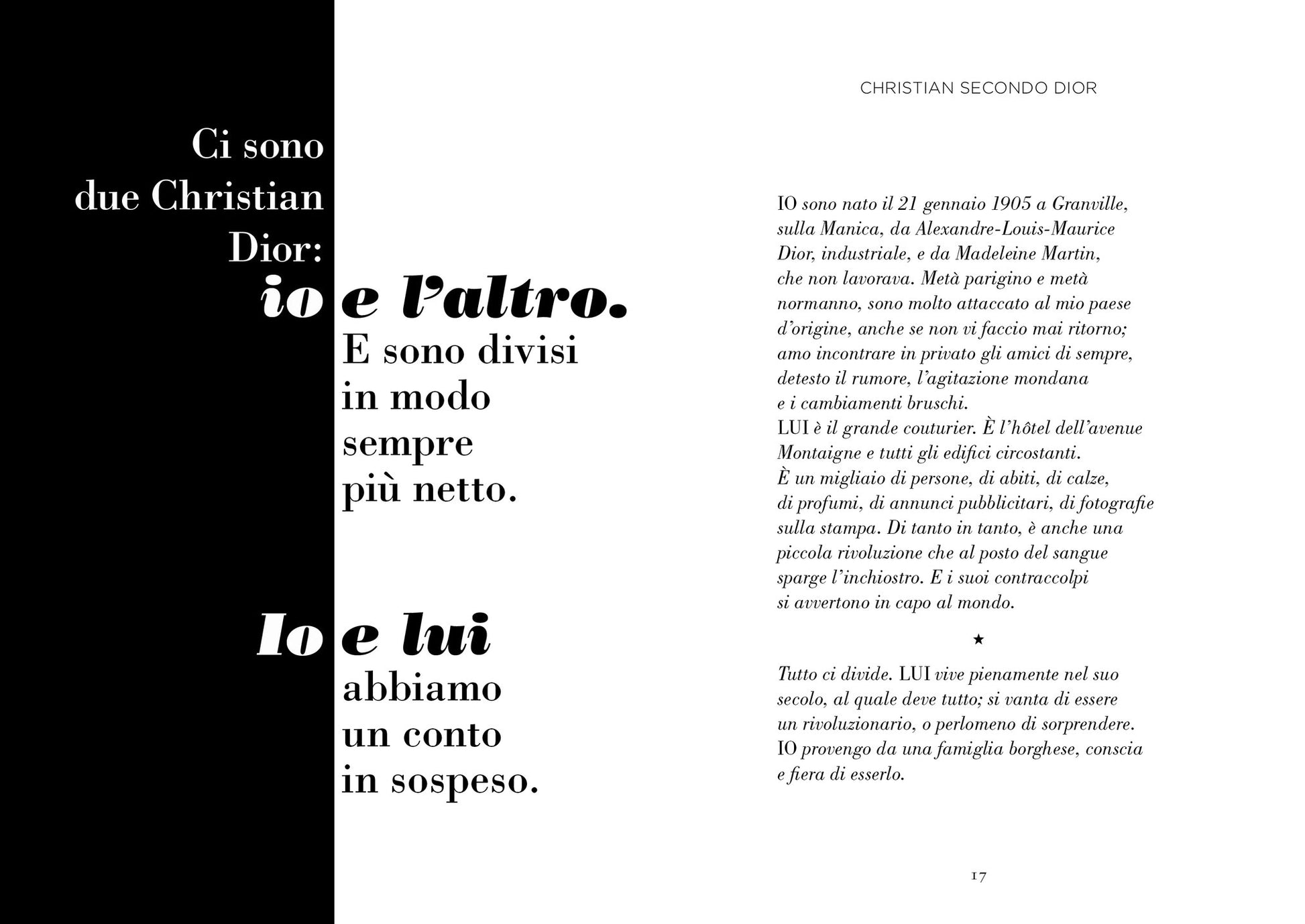 Considerato il creatore di alcuni dei capi più lussuosi di tutti i tempi, Christian Dior è diventato improvvisamente un’icona della moda nel 1947 con il lancio del suo “New Look”: sontuose silhouette a clessidra che hanno rappresentato una boccata d’aria fresca dopo l’austerità del periodo bellico. Il suo successo sfrenato e la fama mondiale che ne derivò si fondavano sulla fi ne comprensione dello stilista in materia di moda, couture, stile, eleganza e femminilità – una prospettiva e un’intuizione pienamente evidenziate dalle parole dello stesso Dior, raccolte in queste pagine per la prima volta.