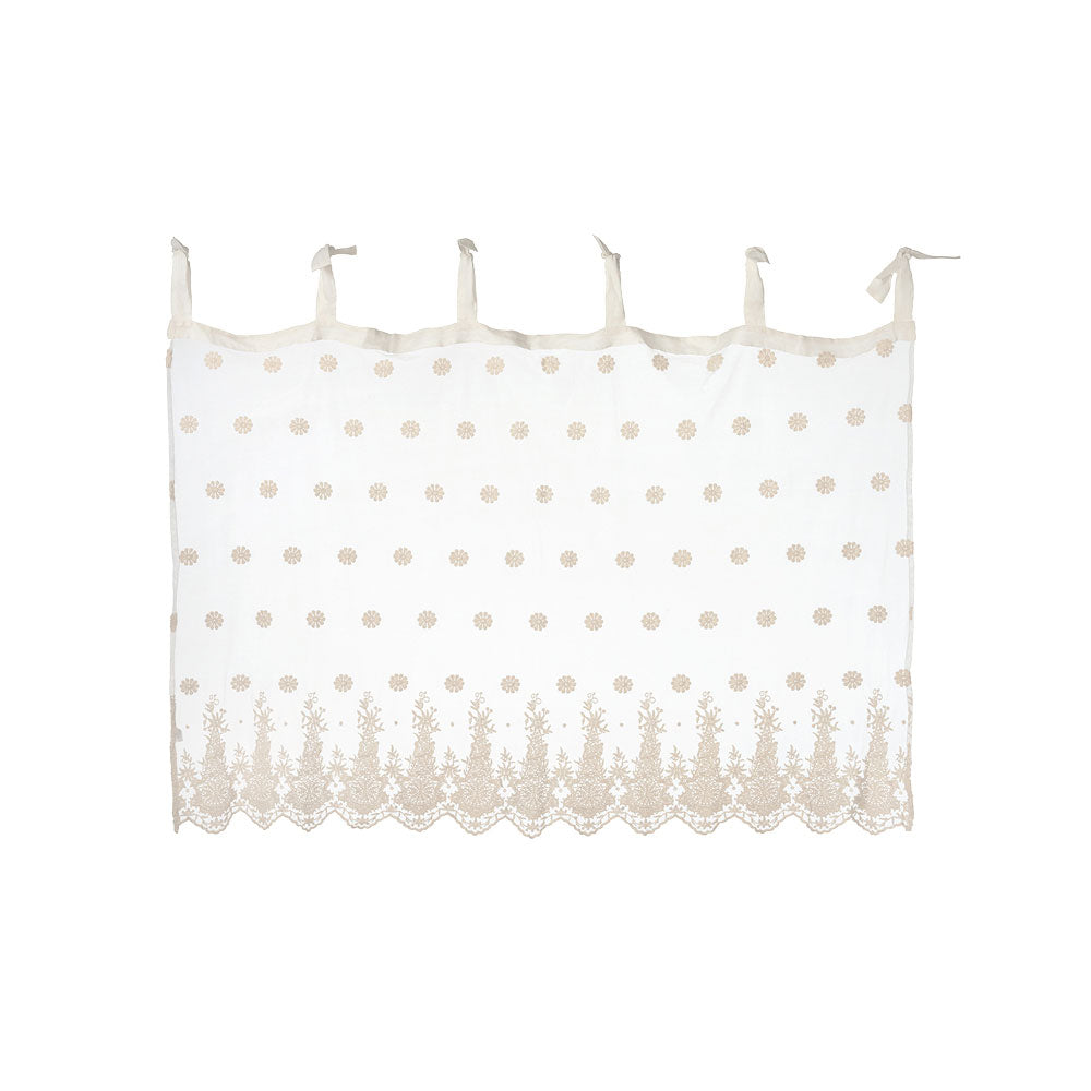 Beneficiati dell'arte e dell'eleganza della Mantovana 'Diana'- L'arte di nacchi. Realizzata in tulle e pizzo con laccetti, questa mantovana aggiungerà un tocco di classe e raffinatezza alla tua casa. Goditi l'atmosfera romantica e sofisticata che solo una mantovana di qualità può offrire.