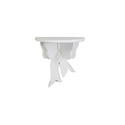 Elegante mensola a mezza luna decorata con un raffinato fiocco nella parte inferiore. La struttura rappresenta un elemento d'arredo distintivo firmato L'arte di Nacchi. Ideale per esporre oggetti preziosi o decorativi, coniuga funzionalità e design ricercato.