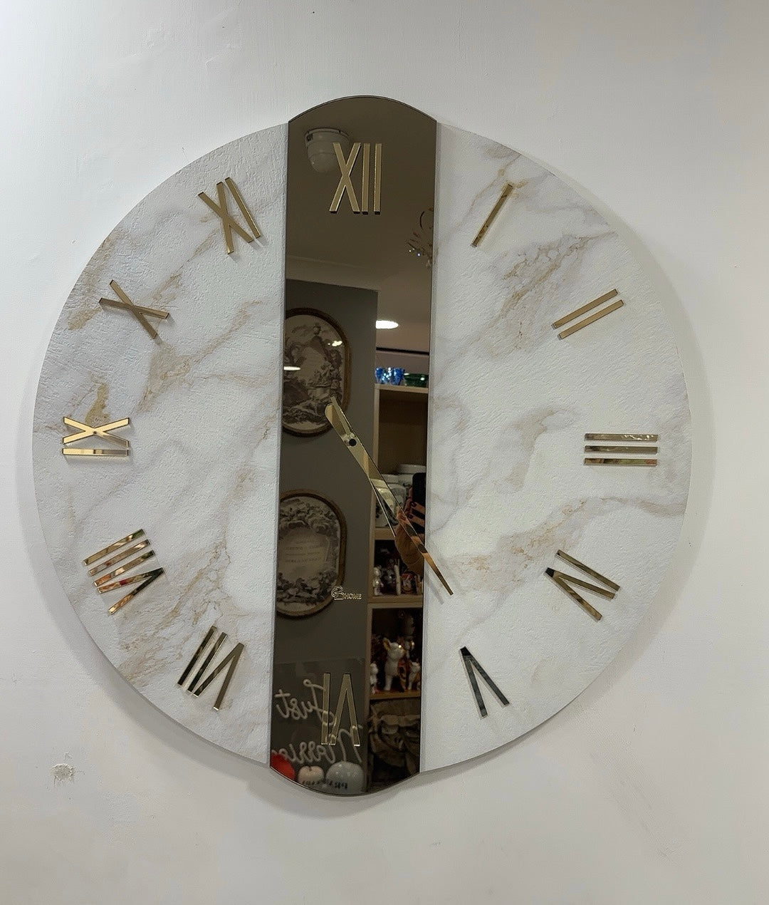 Orologio effetto marmo con specchio bronzo D80 - Brindicci