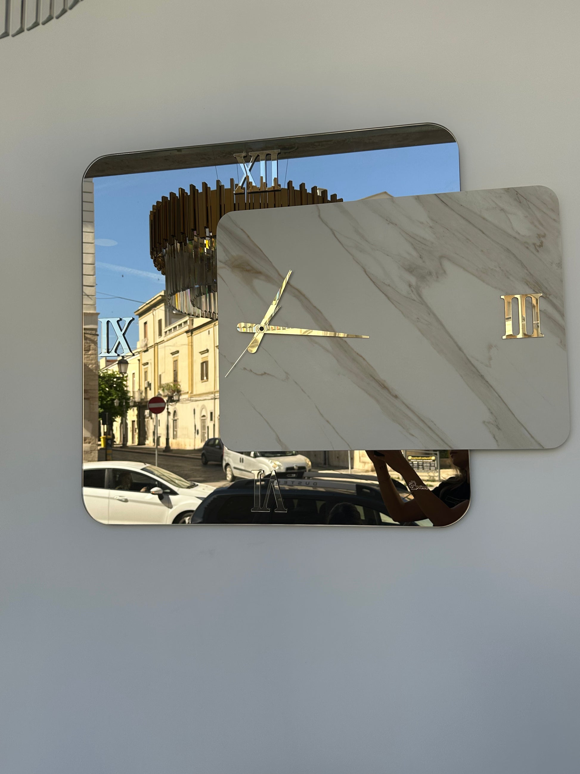 Orologio rettangolare specchiato bronzo con inserto marmo - Brindicci