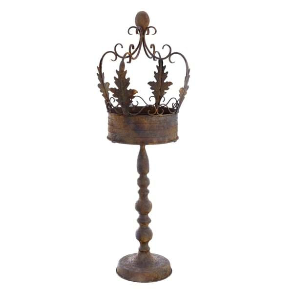 Porta candela su piedistallo con decoro corona di Blanc MariClò.