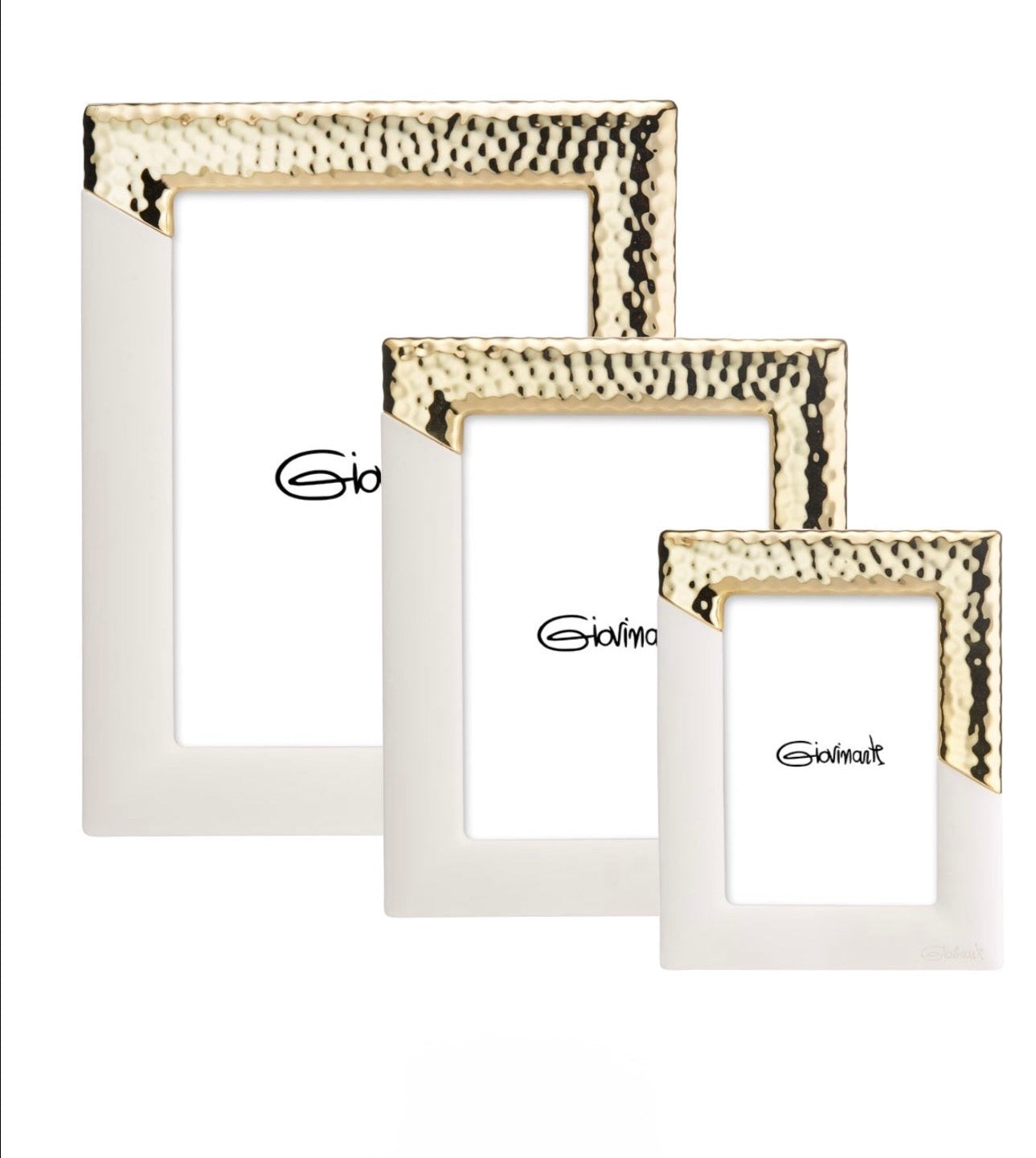 Porta foto della Linea Bicolette, disponibile in tre dimensioni per adattarsi a qualsiasi spazio. Realizzato in materiale di qualità con finitura bianco e oro martellato, che conferisce eleganza e raffinatezza a ogni ambiente. Il design bicolore crea un contrasto sofisticato, perfetto per valorizzare le vostre fotografie preferite. Ideale come regalo per chi apprezza gli oggetti di arredamento dal gusto classico e contemporaneo. Una scelta versatile che si integra facilmente con diversi stili di arredamento.