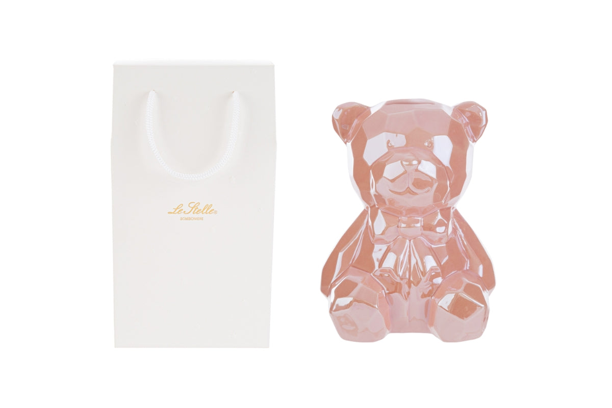Salvadanaio a orsetto in porcellana rosa 14x13x18H - Le stelle
