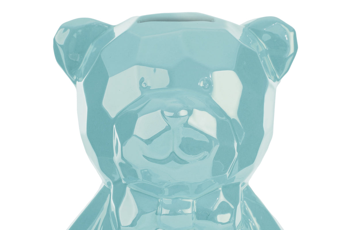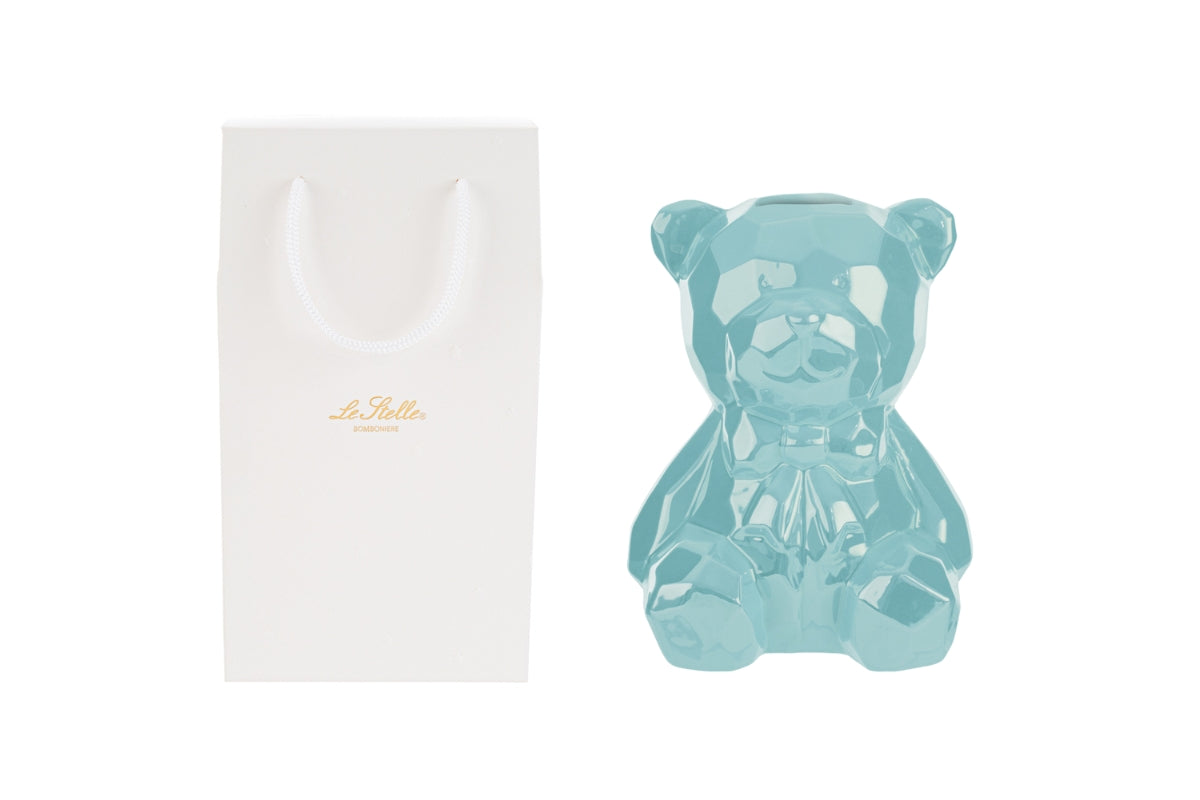 Salvadanaio a orsetto in porcellana celeste 14x13x18H - Le stelle
