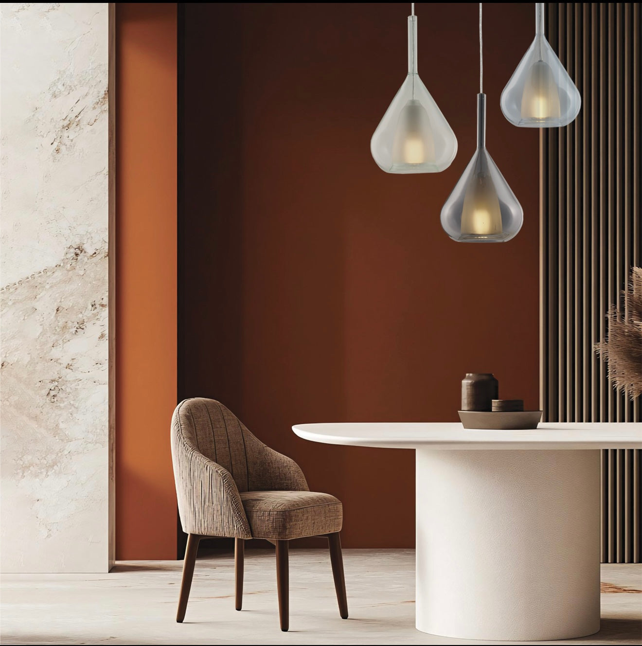Brigitte è una sospensione che conquista al primo sguardo con la sua forma slanciata e il vetro soffiato che gioca con la luce in modo raffinato. Perfetta da sola o in composizioni multiple, dona un tocco di colore e personalità a cucine, ingressi e spazi living. Le finiture in vetro trasparente, ambra, verde, blu e fumé permettono abbinamenti creativi e versatili, adattandosi sia a interni moderni che a contesti più classici. Il suo stile essenziale ma ricercato la rende una scelta elegante e mai banale.