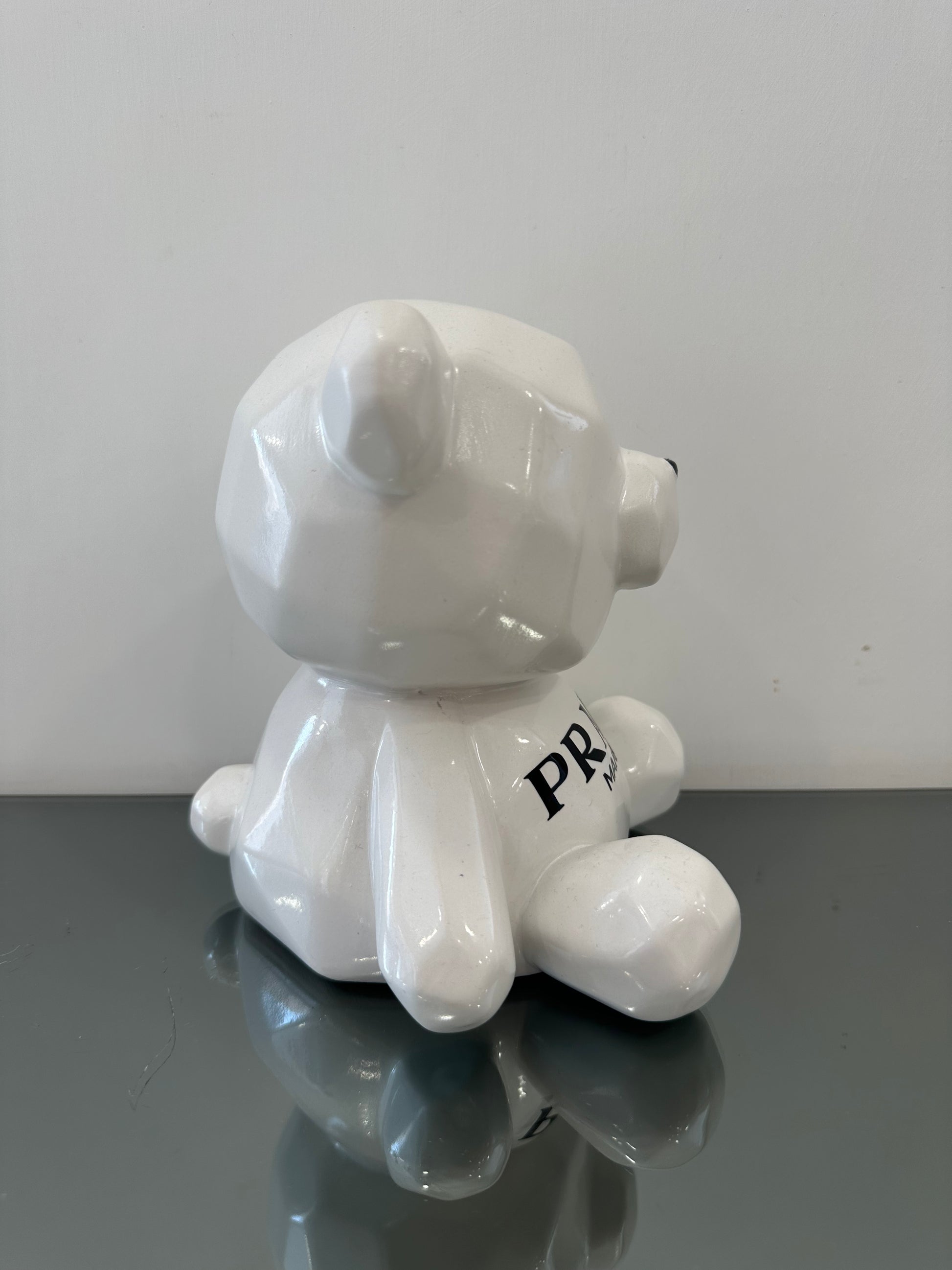 Questo fantastico orsetto in ceramica bianco lucido è un vero oggetto di design e arredo per la tua casa. Con la scritta "Prada Marfa" incisa, aggiungerà un tocco di classe e stile a qualsiasi spazio.