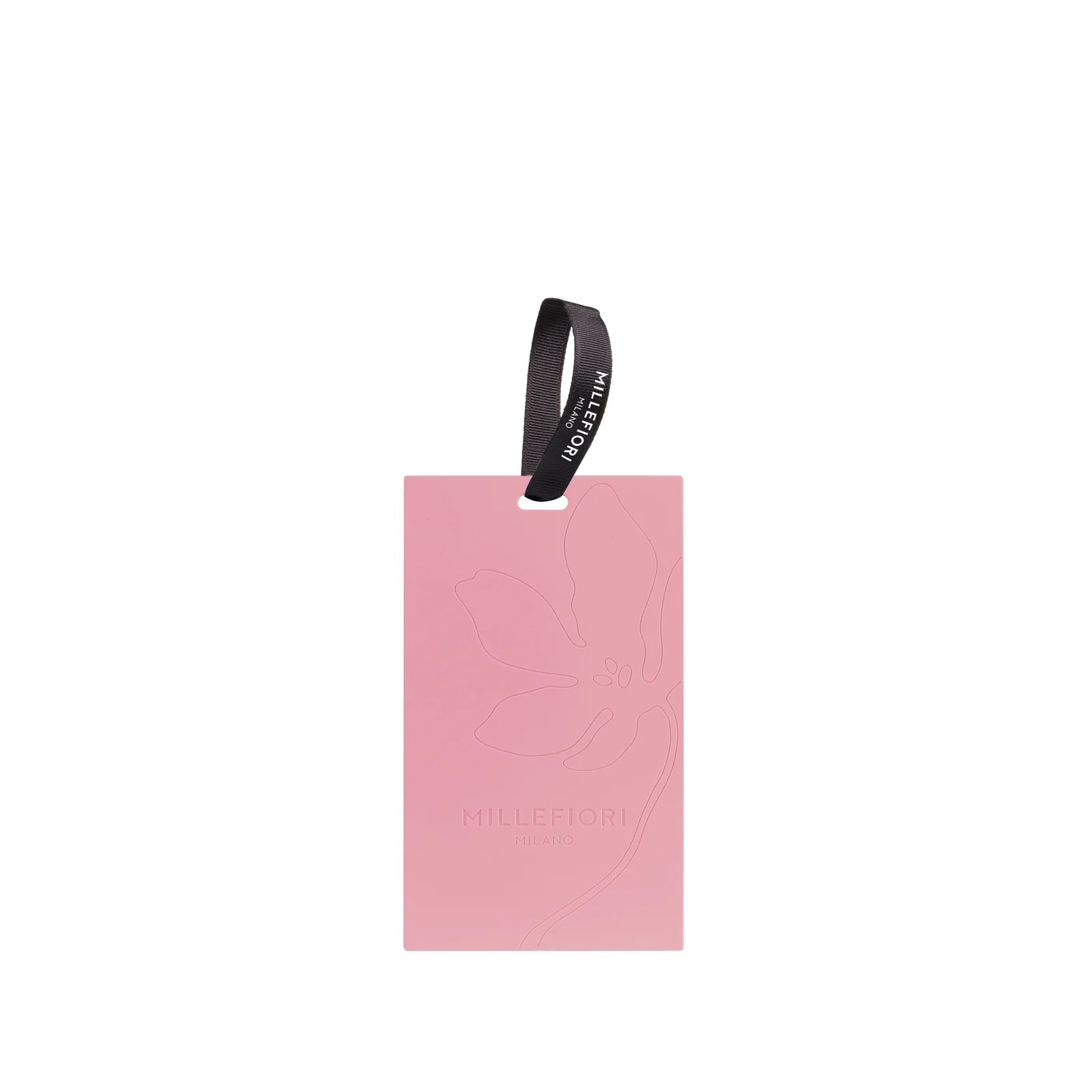 Colorate tessere profumate in confezione da tre, con logo Millefiori Milano e fiore decorativo inciso sul fronte e sul retro. Le tessere profumate possono essere riposte nei cassetti o appese nell'armadio grazie al pratico nastrino.