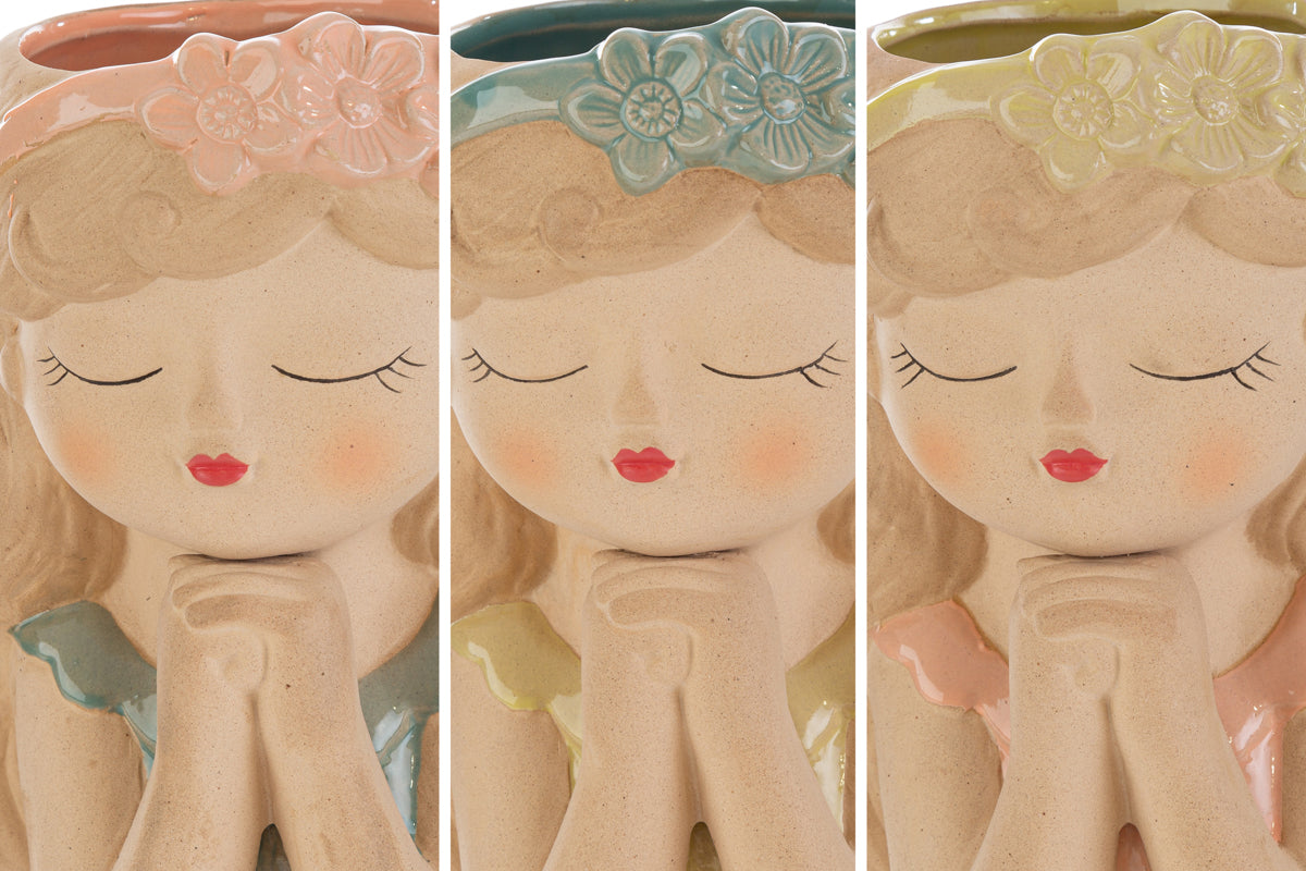 Vaso ceramica a forma di ragazza in 3 ass. 6,5x9H con shopper - Le Stelle