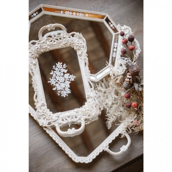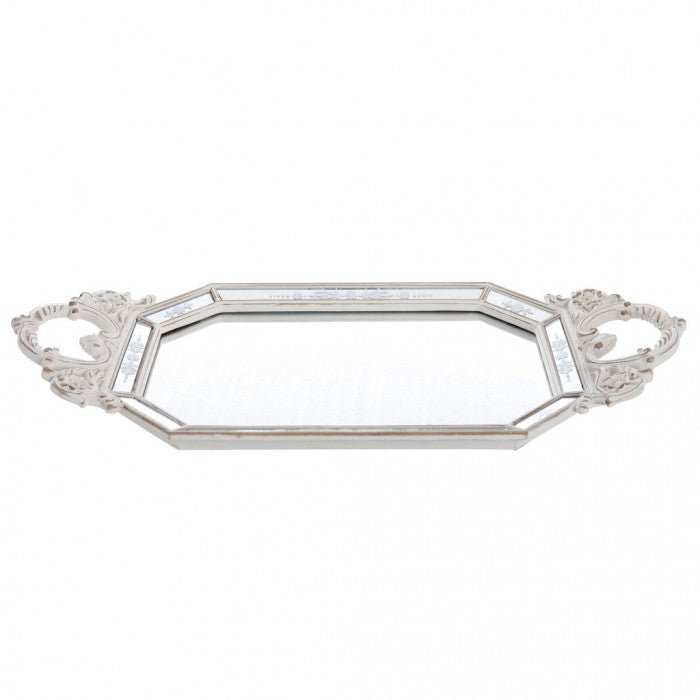 Vassoio in stile shabby chic con fondo specchiato e due comodi manici laterali.